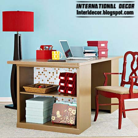Option number 2 (for a home office or craft room): shelves, set at a distance from each other, will be the basis desktop with roomy compartments for storage. These finished products are found in stores is rare, and you have the opportunity to make this furniture with his own hands.